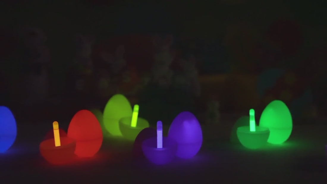 Each egg includes a mini glow stick. Simply bend and shake the stick, place it inside the egg, and it will glow brightly in the dark for hours — no batteries needed!
